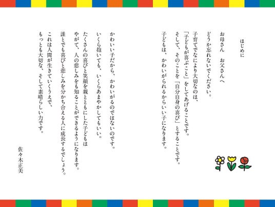 この本はもともといまから10年前に出版されたものです。社会の状況も、子育ての環境もずいぶん変わりました。しかしながら、佐々木先生がお書きになっている子育ての「きほん」は昔も今もずっと変わりません。子育てで悩んだときに、この本を開いてみてください。きっとその悩みを解決するヒントがありますよ。