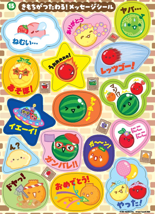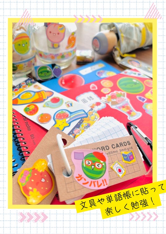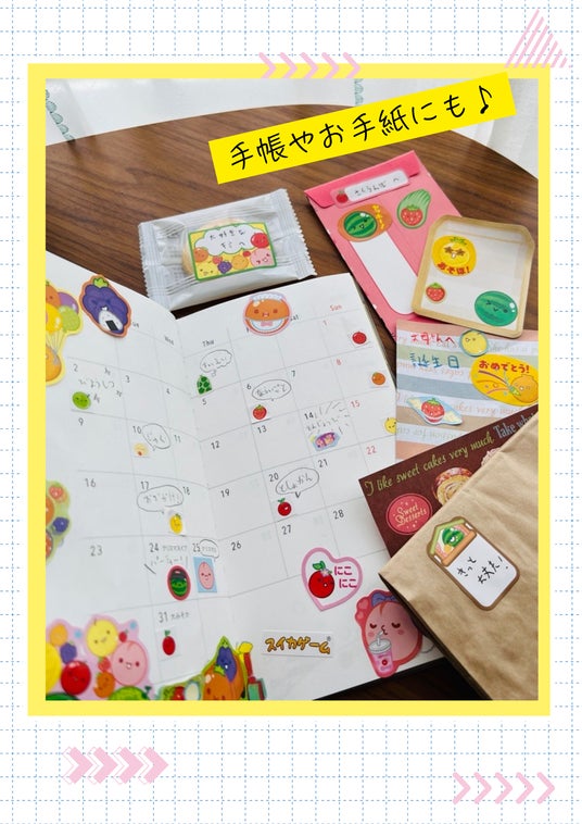 他にも、名前シール、メッセージシール、マステ風シールがあり、ノートや手紙などに貼って、スイカゲームを日常でもたっぷり楽しんでいただけます。