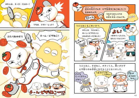 うどんの生地をこねこ…ねこしていたら、う・どーん!と生まれたうどんねこ。世界一のピザを食べるため、ピザねこ仲直り大作戦を決行しちゃいます!