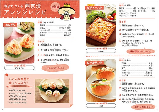 京都一の傳公式キャラクター「西京焼きんぐ」と一緒に本の中の世界を探検しながら、西京漬について学べます。子どもにとって馴染み深い「絵本」を参考に、可愛らしいイラストで仕上げるほか、迷路や塗り絵などの遊び要素をいれ、お子さまが最後まで飽きずに楽しめるように制作しました。巻末には6種のアレンジレシピを掲載。親子で一緒につくりやすい<初級編>から、グラタン・ハンバーグなど子どもが好きなメニューをのせた<上級編>まで、バラエティ豊かなラインナップとなっています。ぜひお子さまと一緒に西京焼きアレンジ料理をお楽しみください。