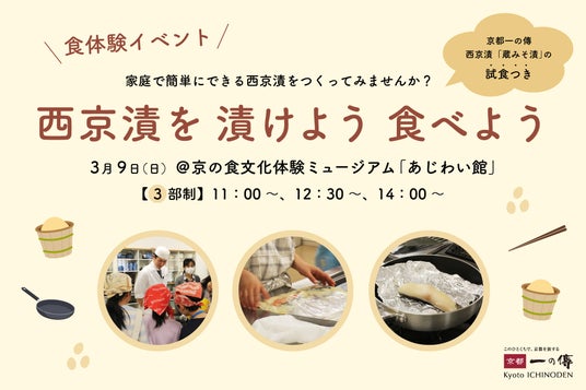西京漬の漬け込み体験やご試食を通して、西京漬の魅力をもっと知っていただきたく、京の食文化ミュージアム「あじわい館」とコラボレーションし、西京漬の食体験イベントを開催します。親子でのご参加はもちろんのこと、老若男女問わず全ての方にご参加いただけます。