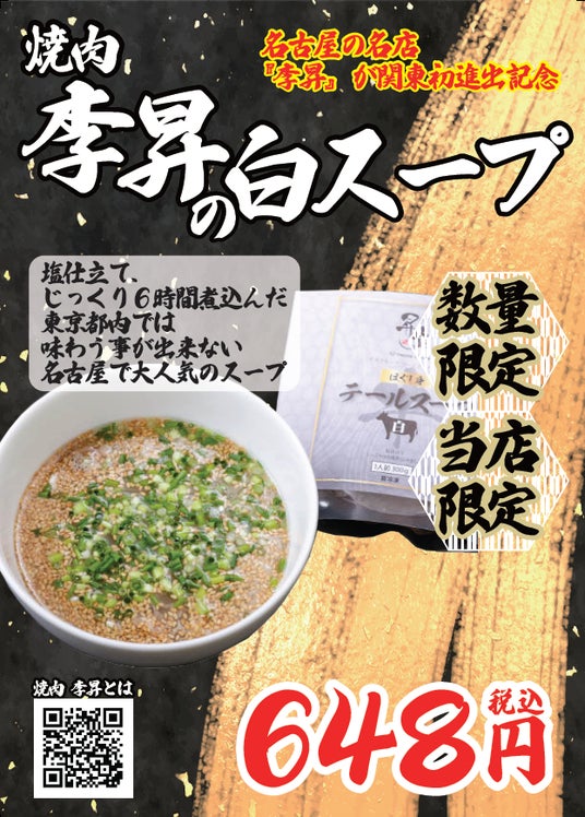1,都内の銀だこハイボール横丁店限定で、【焼肉 李昇の白スープ】をご注文いただけます!