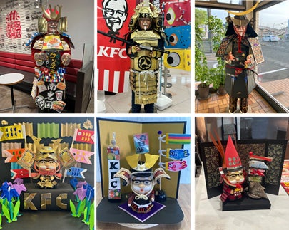 この「武者カーネル」は、40年以上続くKFCの伝統的な地域活動行事のひとつ。それぞれの店舗が、段ボールなどの廃材や再生古紙を使用し、オリジナルデザインの鎧や兜を手づくりで制作しています。デザインやサイズ、細部のパーツにまでこだわった世界に一つだけの作品です。全国のKFC店舗で制作した渾身の作品「武者カーネル」。笑顔と元気を届けるこの季節限定の特別なカーネルに会いに、ぜひお近くのKFC店舗へお越しください!
