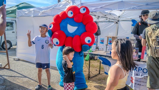 また、2025年大阪・関西万博の公式キャラクター「ミャクミャク」さんが登場し、子どもたちとの写真撮影や、万博ブースでの紹介などを通じて会場を盛り上げました。