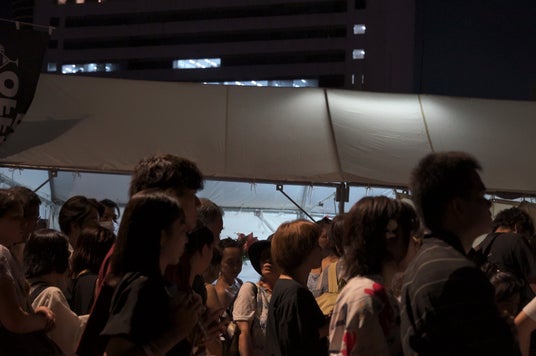 当日は、ソファーVIP席、階段席A・B・Cの3種の観覧席をご用意し、すべてのチケットが完売となる盛況ぶり(完売御礼!)。受付開始前から多くのお客様にお並びいただきました。