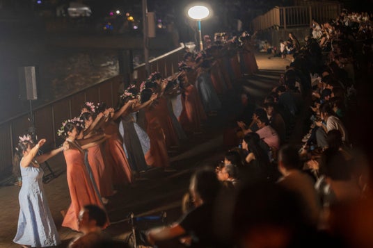 花火打ち上げ前には、堺市を拠点とするフラサークル「Kapalili(カパリリ)」の皆さんによる華やかなフラダンスパフォーマンスが披露されました。