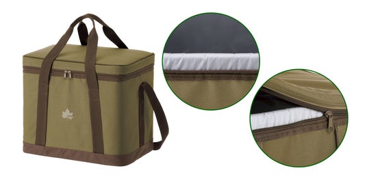 保冷力を高める10mm厚の高機能断熱材を採用のほか、ジッパー部分の裏にも断熱材を使用することで冷気の流出を防ぐので、夏場でも長時間保冷力を保つことができます。内側蓋部分には、表面温度-16℃の超強力保冷剤「氷点下パック(R)」(別売り)が入るポケットが付いており、「氷点下パック(R)」をセットすることで、さらに保冷力を高めることができます。
