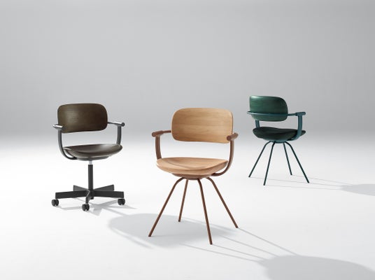 木の温もりにイトーキ独自のエルゴノミクスを搭載したvertebra03 WOOD。国産広葉樹であるクリの無垢材を切削して成形した背とシートの製作はカリモク家具が担当。木工家具を作り続けてきた同社のノウハウと、イトーキのもつ人間工学やシートトレーサーなどを活用した設計技術によって、木材の質感を活かしながら、執務姿勢に追従する最適な背とシートの形状を実現しました。着座位置を安定させるための座面のノンスリップ加工や、木目を残しながら繊細なカラーリングを表現する塗装技術なども特徴です。