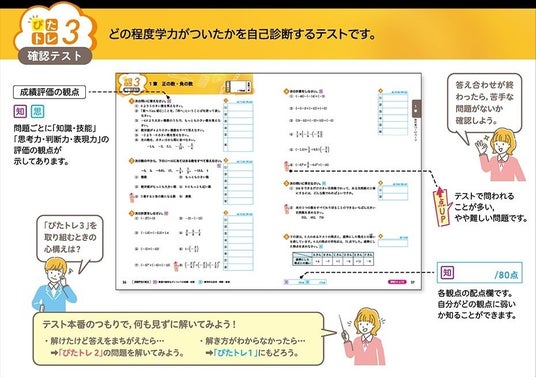 【ぴたトレ3】「確認テスト」…学習したことが身についているかを確かめる。通知表に直結する観点別評価問題を掲載(5教科)
