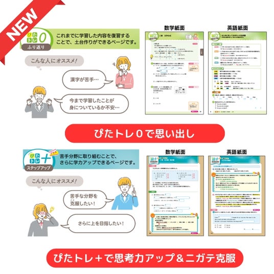 NEW 学力アップを支える新コーナー「ぴたトレ0(ゼロ)」「ぴたトレ+(プラス)」
