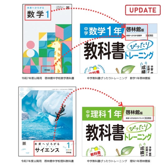 令和7年(2025年)4月から、中学校の教科書が全面改訂されます。「中学教科書ぴったりトレーニング」も紙面デザインを大幅刷新して、新教科書に完全対応いたします。