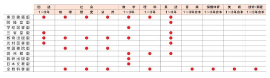 各教科、教科書会社にあわせた73点のラインナップです。教科書改訂年では、新規の教科書だけでなく、継続利用の教科書もあります。教科書に対応した教材をご購入の際は、対応する教科書をご確認ください。