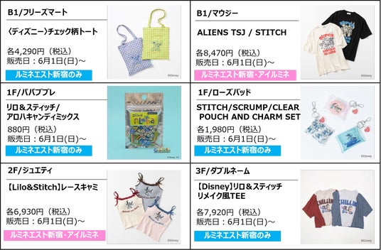 ルミネエスト新宿館内の各ショップ・POP-UPショップにて、本キャンペーン限定のスティッチデザインの「ディズニースペシャルアイテム」を展開いたします。一部ショップの商品はルミネのネット通販「アイルミネ」でも販売いたします。