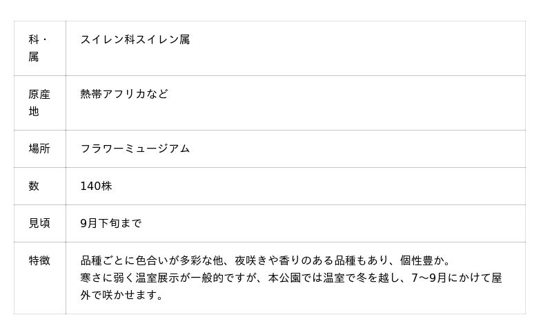 他にも、秋の七草オミナエシ、インパクトある姿のトサカケイトウなど、色とりどりの花々が咲き、園内を鮮やかに彩っています。