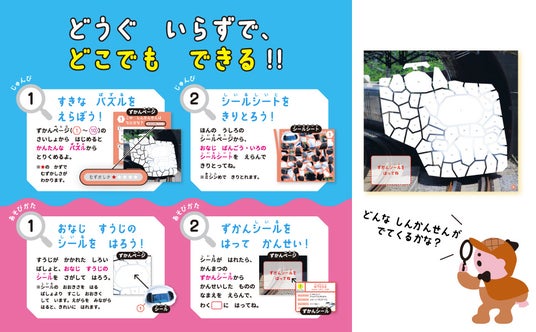 最後は「ずかんシール」を貼ることで、図鑑が完成します。最後に図鑑になることで、貼り終わったときに普通のシールブックでは感じられない「達成感」が得られます。