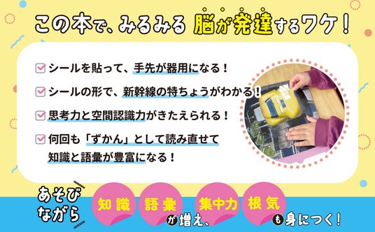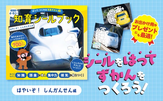 【スキマ時間や、旅行のおともに!】シールをはって、自分だけの図鑑が作れる、『はって、つくれる写真ずかん 知育シールブック はやいぞ! しんかんせん編』が発売!