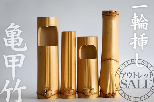 今回の訳ありアウトレットSALEでは、亀甲竹一輪挿しのB級品を特別価格で数量限定販売いたします。通常は販売しないシミやキズ、割れがある商品ですが、その個性的な魅力が、お部屋に独特の雰囲気を与えてくれることでしょう。「獅子口タイプ」と「筒タイプ」の2種類があり、お好みのタイプをお選びいただけます。