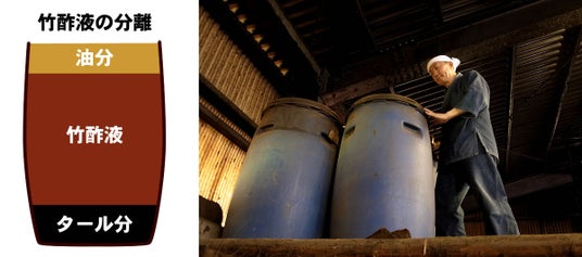 竹酢液は、竹炭を焼く際に発生する煙から抽出される、天然成分が豊富な水溶液です。300種類以上の有効成分を含み、入浴剤として使用することで体の芯まで温まり、スキンケアや消臭アイテムとしても活用できる多機能性が特長です。当社の竹酢液は、四国産竹を使用し、伝統的な製法でじっくりと時間をかけて製造されています。
