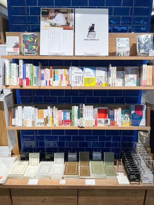 ブックカバーやしおり、読書の時間を豊かにする小さな雑貨が並びます。