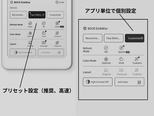 - EinkWise によるアプリ個別の表示最適化(ver4.1より)