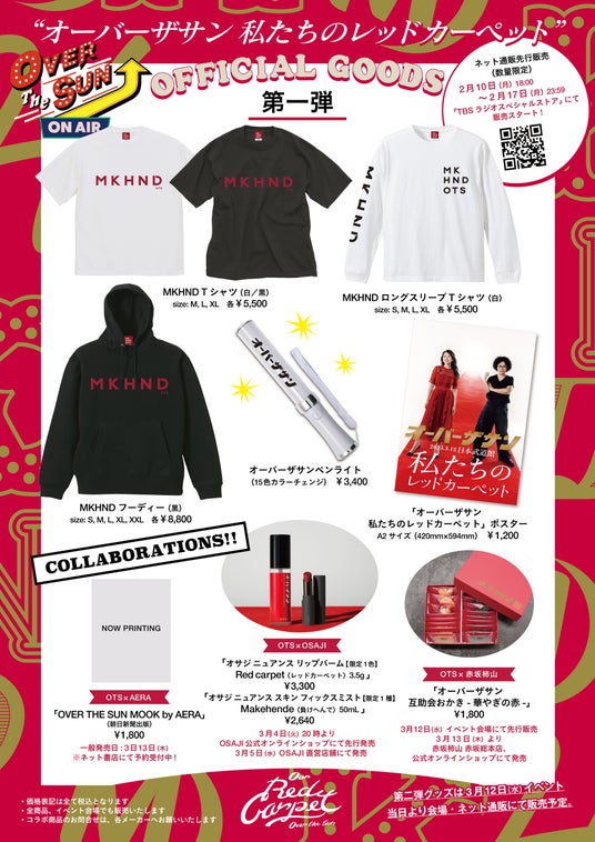 2025年3月12日(水)日本武道館にて開催する番組イベント「オーバーザサン 私たちのレッドカーペット」の配信チケットの情報と、オフィシャルグッズ第一弾、そしてコラボグッズの詳細が解禁となりました!