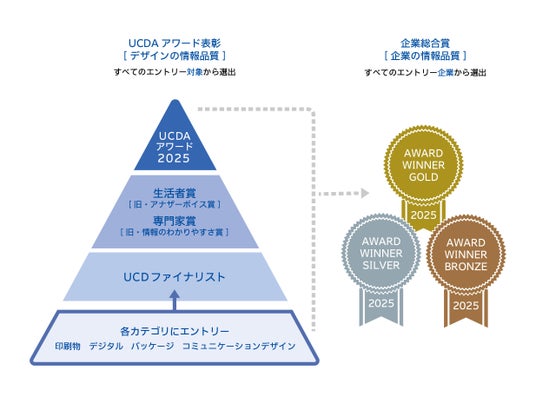 また、「UCDAアワード2025」にエントリー参加したすべての企業から「企業総合賞」を選出します。UCD(ユニバーサルコミュニケーションデザイン)による社会課題の解決や年間のUCDA認定資格取得、UCDA認証「見やすいデザイン」「伝わるデザイン」の取得などを通じた「企業の情報品質」を評価し、高い評価を受けた企業を「ゴールド」「シルバー」「ブロンズ」として表彰します。