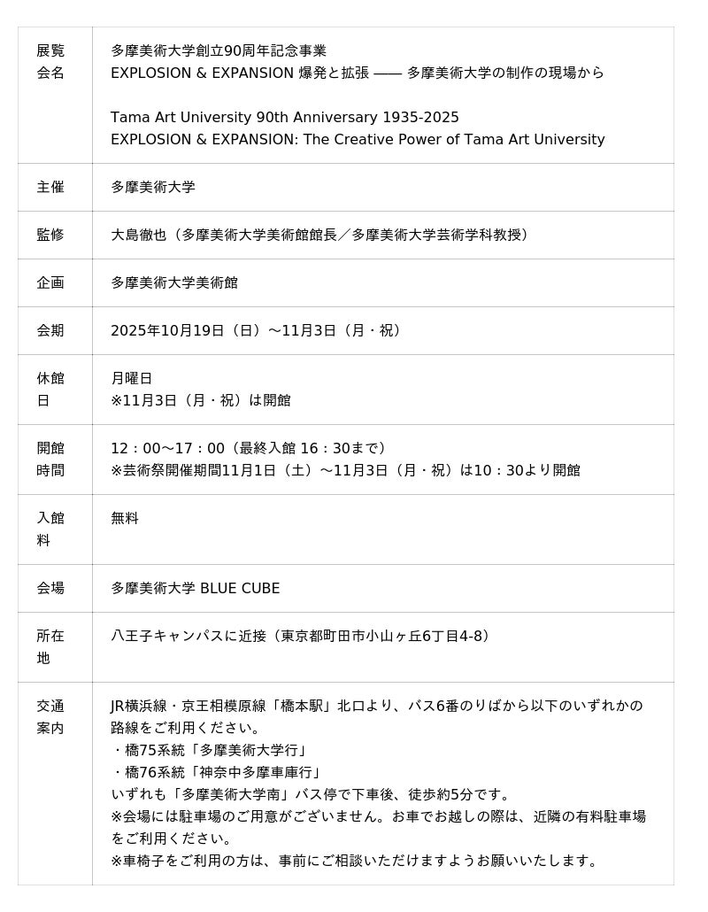 [開催決定]多摩美術大学創立90周年記念事業 EXPLOSION & EXPANSION 爆発と拡張 ―― 多摩美術大学の制作の現場から