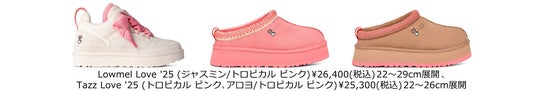 Tokyo (2025年1月15日) -南カリフォルニアを拠点とするグローバルライフスタイルブランドのUGG (a division of Deckers Brands [NYSE: DECK])は、UGG 2024バレンタインコレクションを発表します。身に着けるのと同じくらい包装を開けるのも楽しいUGGのギフトコレクションに、人気のLowmelとTazzをピンクのカラーリングがキュートなバレンタイン限定デザインでアップデートしたLowmel Love '25(ローメル ラブ '25)とTazz Love '25(タズ ラブ '25)が新登場。アッパーには、韓国で流行し、世界中に広まった指ハートの(人差し指と親指で小さなハートの形を作る)トレンドにインスパイアされた刺繍のディテールがあしらわれた新コレクションは、自分へのご褒美や誕生日などの記念日へのギフトとしてもおすすめ!