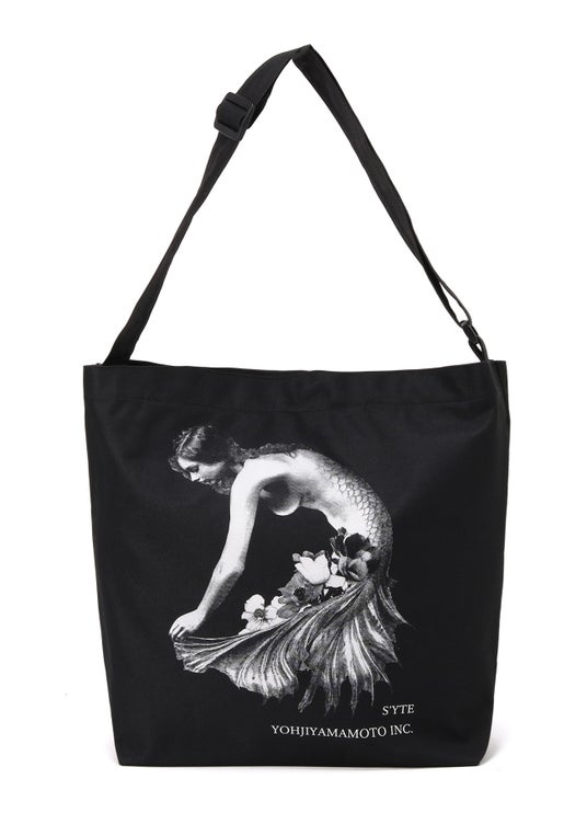 スカルモチーフの薬瓶、アンチ・アムリタ=反・不死の霊薬を題材にした作品と人魚姫を題材した作品を両面プリントしたショルダーバッグ。本コラボレーションのためにデザインしたコラボレーションロゴがワンポイントで入り、幻想的な人魚姫と不気味なスカルというフロント・バックのギャップが楽しめる。