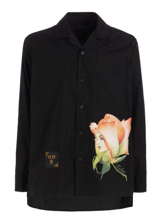 イタリアの詩人ジャンバティスタ・パジーレ 「太陽と月とターリア」を題材にした作品 【Talia/ターリア】をプリントしたオープンカラーシャツ。ブラックボディに柔らかな水彩画のカラーグラデーションをプリントで表現。