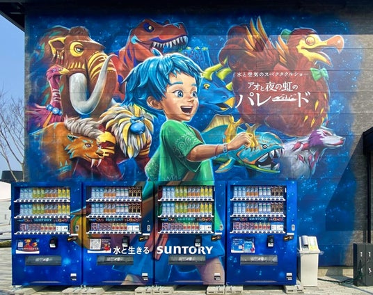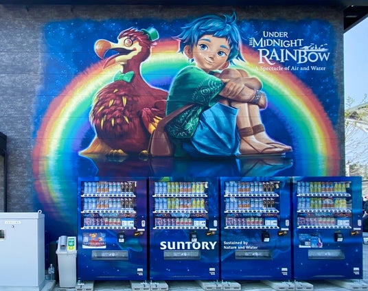 ミューラル(壁画)アートカンパニーの株式会社OVER ALLs(本社:東京都港区、代表取締役社長:赤澤岳人、以下「OVER ALLs」)は、大阪・関西万博で開催される水上ショー「アオと夜の虹のパレード」を出展するサントリーホールディングス(株)(以下「サントリー」)の飲料自動販売機コーナーに、ショーを描いた壁画を制作しました。