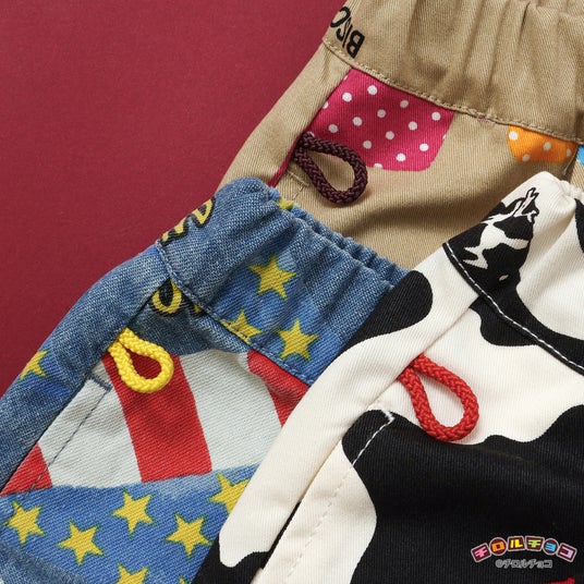 ゆったりシルエットではきやすいボトムは、チロルチョコの「ミルク」「アーモンド」「ビス」