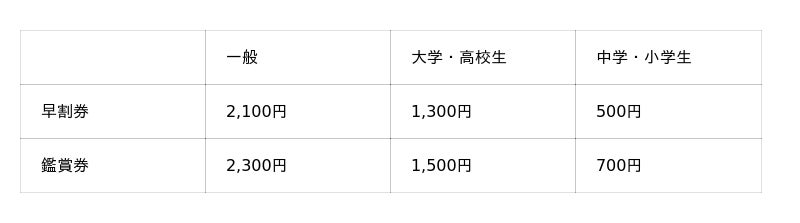 【早割ペアチケット(一般2枚)】:4,000 円 当日料金より600円お得!