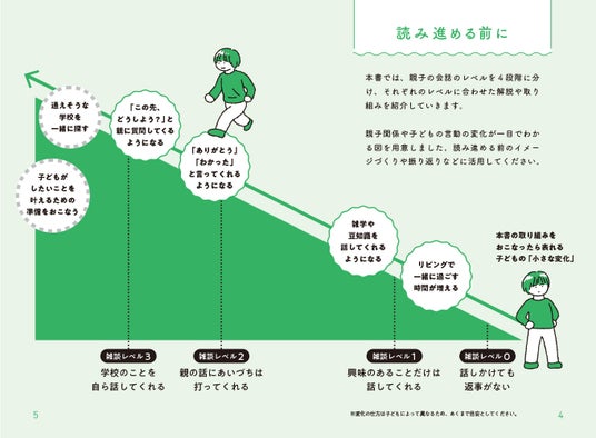 本書は、不登校に悩む多くの保護者に向けてサポートをおこなっている著者が、親子の会話状態に4段階のレベルを設定し、それぞれのレベルに合わせた解説や取り組みを紹介していきます。