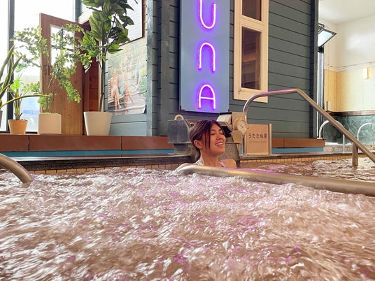 北欧・フィンランドをコンセプトにした温浴施設。オーロラのあるラウンジやフィンランドのサウナ小屋をイメージした蒸気浴室「サウナコタ」、カフェの北欧メニュー、テキスタイルブランド「カウニステ」とコラボした館内着などで、まるで家に友達を招いたかのように、ゆったり・だらだらお過ごしいただけます。