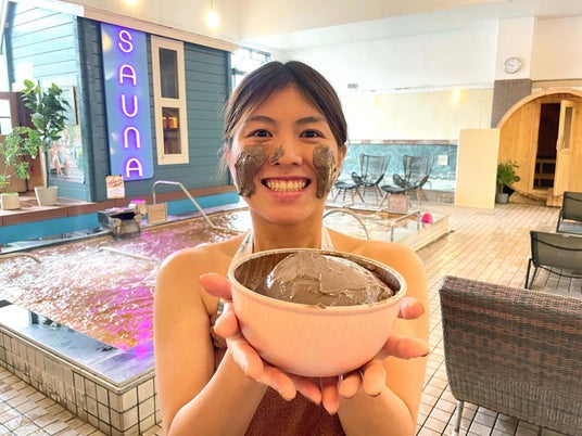 男女浴室に設置している「泥パック」がバレンタインシーズン限定で「チョコレート泥パック」に。まるで本物のチョコレートが溶けたような香りと触感の泥パックで顔を包んで、お肌をツルツルに!