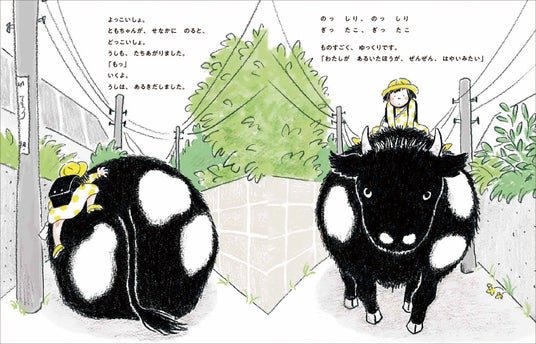 なんとも愛らしい、ともちゃんとうしのやりとりに思わず笑ってしまいます。