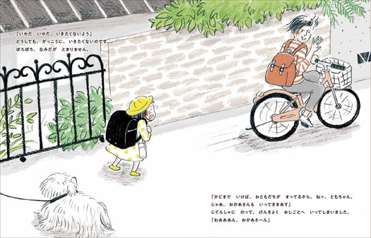 ともちゃんは、ある朝、どうしても学校へ行きたくなくて、泣いています。