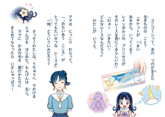 宇宙にすむプリンセス達と友達になりたいステラは次の出かけ先を探していました。すると、お母さんからユニコーンの住む星レインボルンで行われるユニコーンレースのチケットをもらいます。