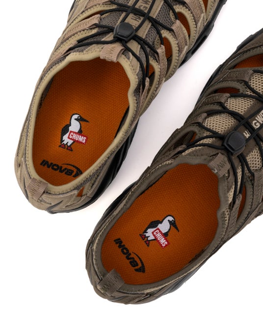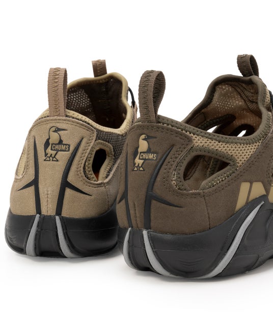 今回のコラボレーションシューズは、『CHUMS』発祥の地であるアメリカ・ユタ州の国立公園・ザイオンナショナルパークをイメージしたカラーリングを左右非対称に配置したあそびゴコロ溢れるデザインです。アッパー部分には 『CHUMS』のタグラインである「HANG WITH YOUR CHUMS」の刺繍、踵部分にはマスコットキャラクターであるブービーバードをデザインし、インソールにはコラボレーションした両社のブランドロゴがプリントされたスペシャル仕様です。
