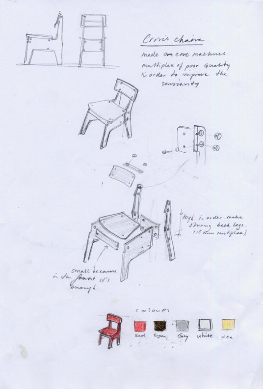 PIET HEIN EEKが初めてCNCルーターで制作をしたCrisis Seriesは、当時、そもそも素材自体が高級な家具が氾濫し、使用者が限定されてしまう中であえて安価な素材を使用し、また構造部分にも化粧を行わず、当初は組み立てもお客様自身が行うことで素材本来の美しさや、構造の合理性を感じ取れるようにという想いが込められています。シンプルな素材と技法だからこそ、ディテールのこだわりと、使っていく中での表情の変化が感じ取ることのできるシリーズとなっています。