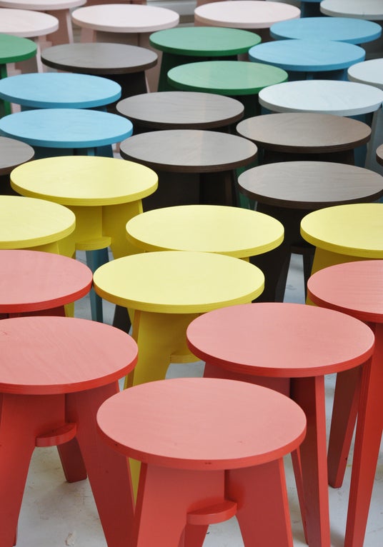 今展示会ではPlywood(ラワン材)という安価な素材を用いて作成されたCrisis seriesの中から、素材そのままの表情を活かした無塗装の作品と、2024年のDDW(ダッチデザインウィーク)で発表した新色を配色したカラフルなコレクションを中心に構成されています。