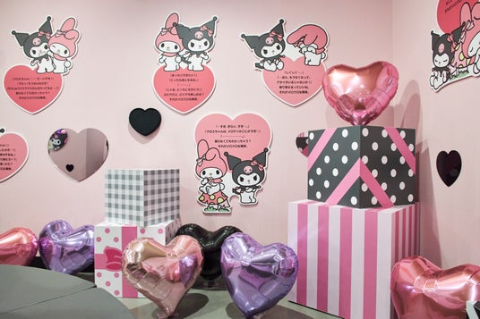 それぞれが持つかわいさでみんなを笑顔にしてきた“メロクロ”ことマイメロディとクロミ。本展は、そんなかわいいふたりの“おそろい”アニバーサリーイヤーにちなみ“メロクロ”のパーティに招待されたような体験ができる内容となっております。入口のゲートをくぐり抜けると、見た目も考え方も性格も、正反対なふたりの個性あふれるお部屋が広がり、その先のパーティ会場では“メロクロ”の大きなバルーンがお客様をお出迎えします。