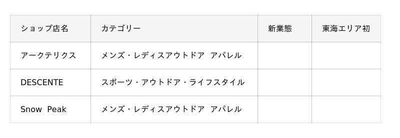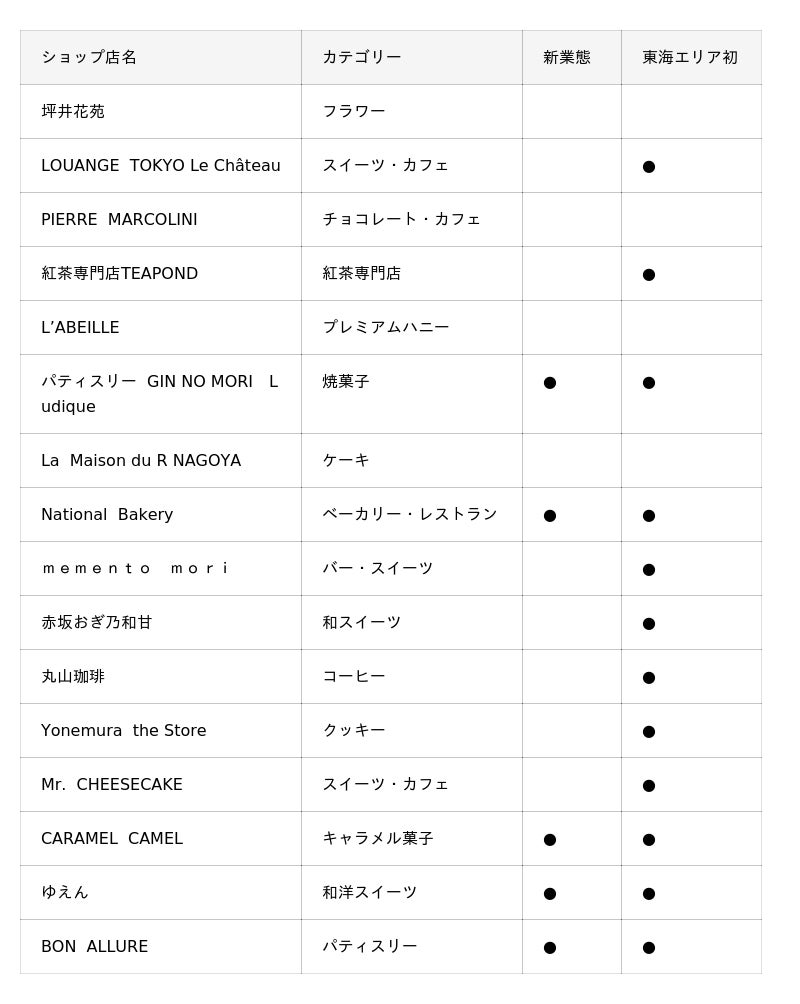 【 東海エリア初出店:40店舗 / 新業態:16店舗 】