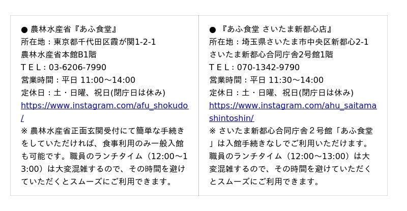 ●農林水産省『あふ食堂』