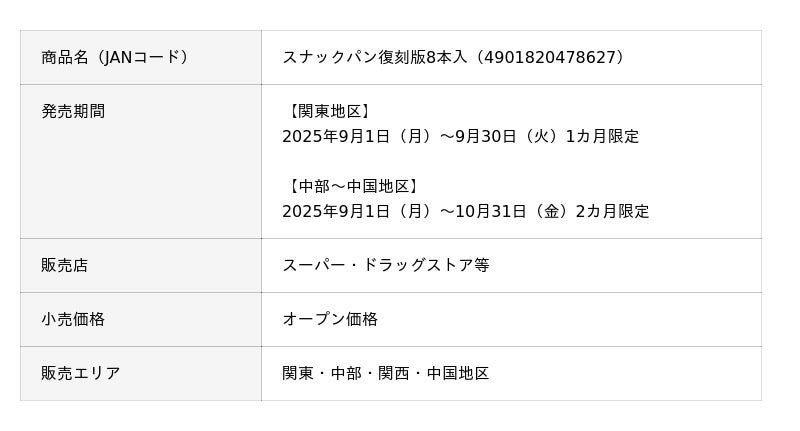 【発売55周年記念製品】「スナックパン復刻版8本入」、期間限定で発売!