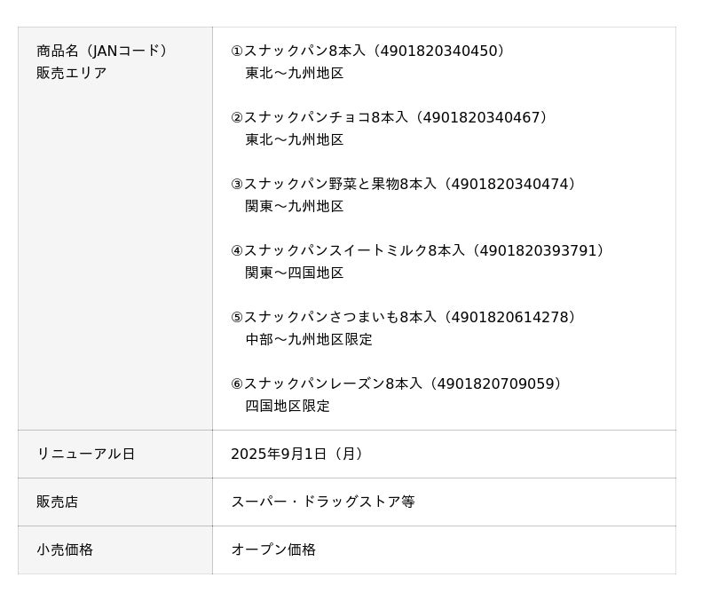 発売55周年を記念して、2025年9月1日(月)から「記念キャンペーン」や「スナックパン復刻版の発売」、「パッケージデザインリニューアル」を実施します!