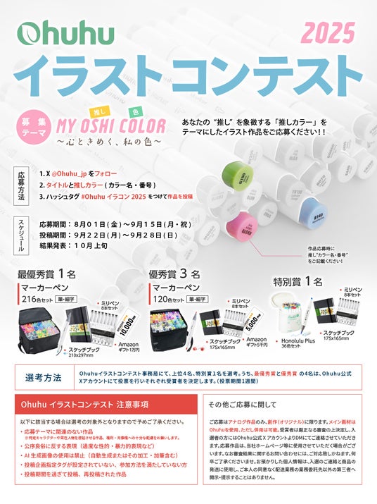 【今年も開催】\Ohuhuイラストコンテスト2025/ テーマは『MY OSHI COLOR』入賞者には豪華賞品も!