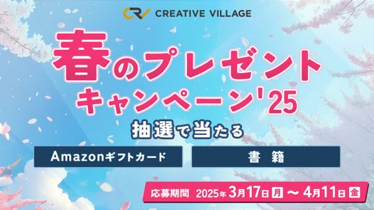 株式会社クリーク・アンド・リバー社(以下C&R社)が運営するクリエイターのための情報サイト「CREATIVE VILLAGE」は、アンケートにご回答いただいた方から抽選でAmazonギフトカードや書籍をプレゼントする「春のプレゼントキャンペーン'25」をスタートさせます。