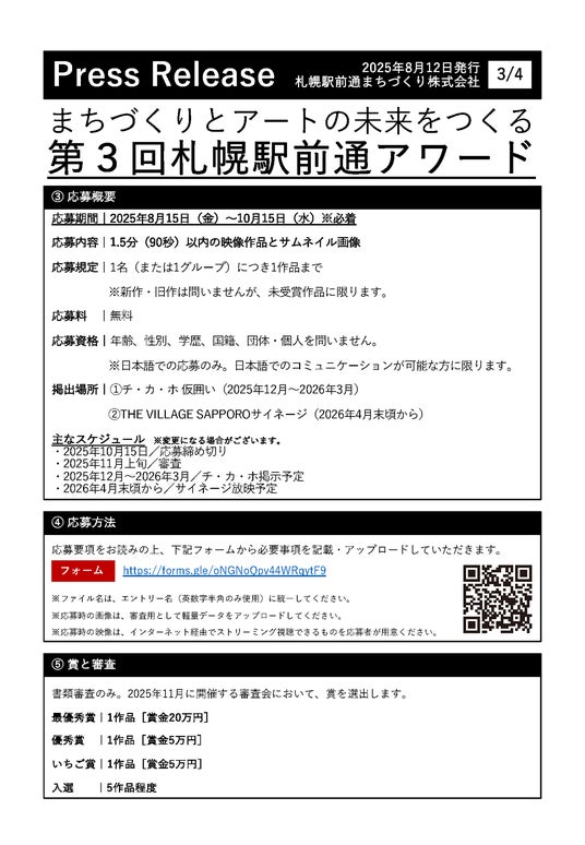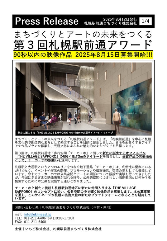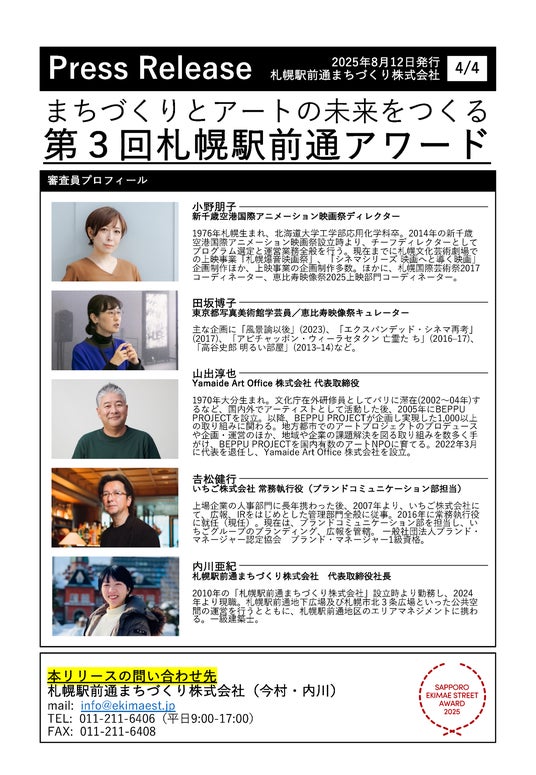 ※ 本アワードに関するお問合せ先は、以下、「札幌駅前通まちづくり株式会社Press Release」をご参照ください。